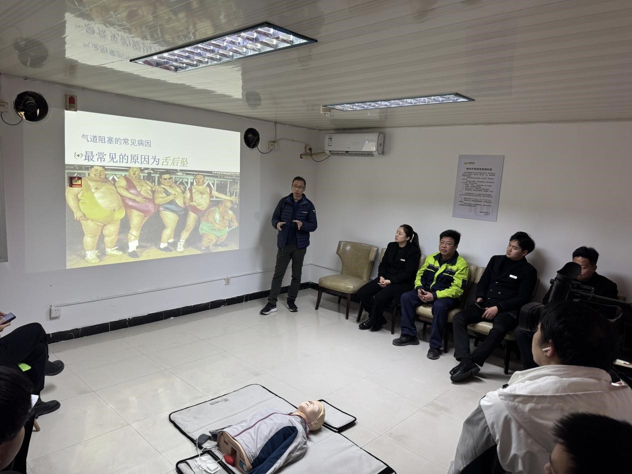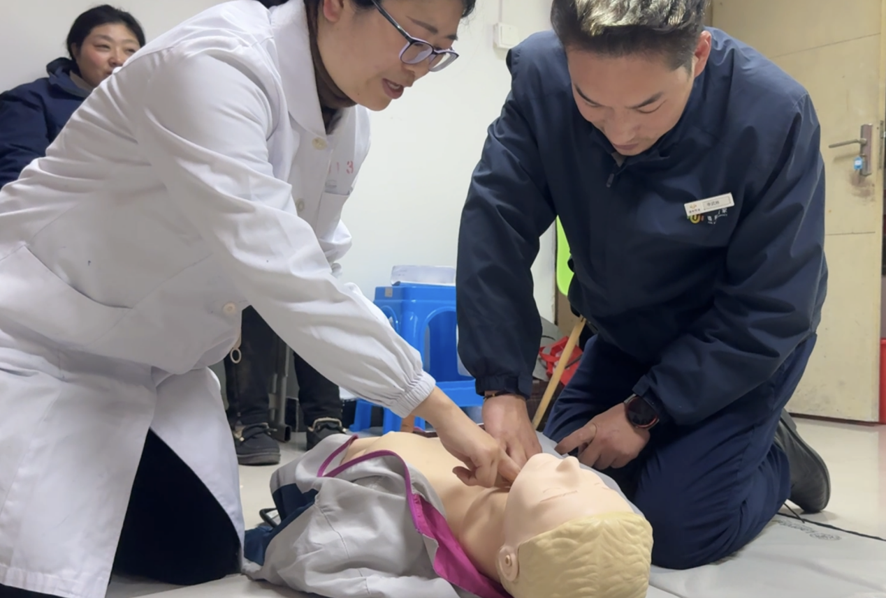 培訓過程中,南通三院心內(nèi)科顧建國主任帶來了干貨滿滿的理論講解。盛和悅家的物業(yè)人員們?nèi)褙炞ⅲJ真聆聽顧主任關(guān)于現(xiàn)場急救種類及基礎知識的細致闡述,逐漸明晰在面對各類突發(fā)狀況時應如何迅速且準確地做出判斷與反應。緊接著,心內(nèi)科崔紅艷護士長進行心肺復蘇(CPR)實操演示,其專業(yè)嫻熟的動作令在場人員印象深刻。盛和悅家的物業(yè)人員們踴躍上手實踐,在崔護士長及顧主任的耐心指導下,逐漸掌握了正確的操作要領(lǐng),每一次按壓、每一次人工呼吸都力求標準規(guī)范,不斷糾正與完善自身技能。