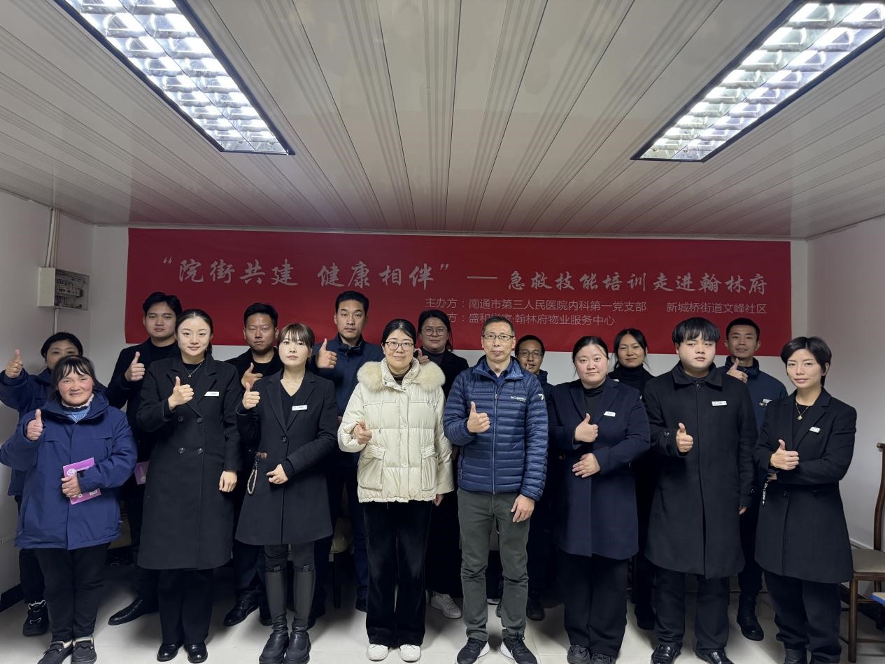 近日,在院街共建的積極推動下,由南通市第三人民醫(yī)院內(nèi)科第一黨支部與新城橋街道文峰社區(qū)聯(lián)合主辦的急救技能培訓活動在翰林府盛大開展,盛和悅家積極組織物業(yè)人員全程參與其中。此次活動是構(gòu)建社區(qū)安全防護網(wǎng)的重要舉措,為提升物業(yè)團隊應急救援水平提供了寶貴契機。